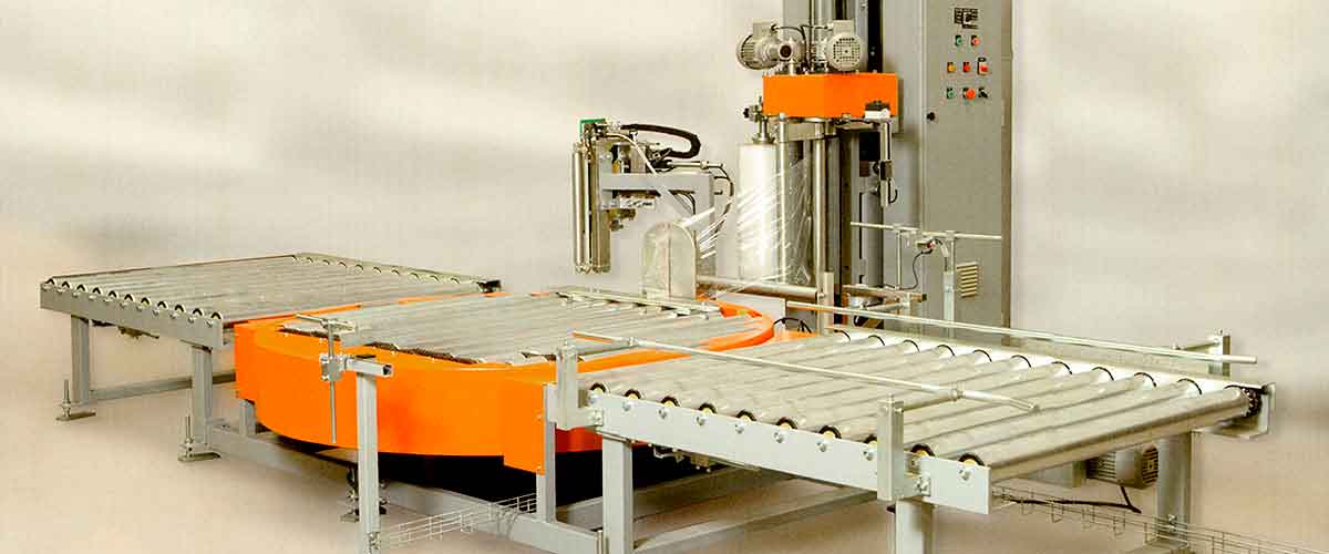 - Enfardadora automatica con mesa de rodillos giratoria. Cadencia maxima de 40 palets por hora. Modelo rotopal pga.